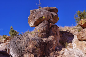 We walked out past our entry point and found seven or eight bedrock mortars, but no petroglyphs. I didn't really have a return route planned,but as Silva Canyon began winding deep into the accumulated soil and out into the desert flats, we turned back east and then marched northeast up another tributary arroyo. Back on top of the hill , we