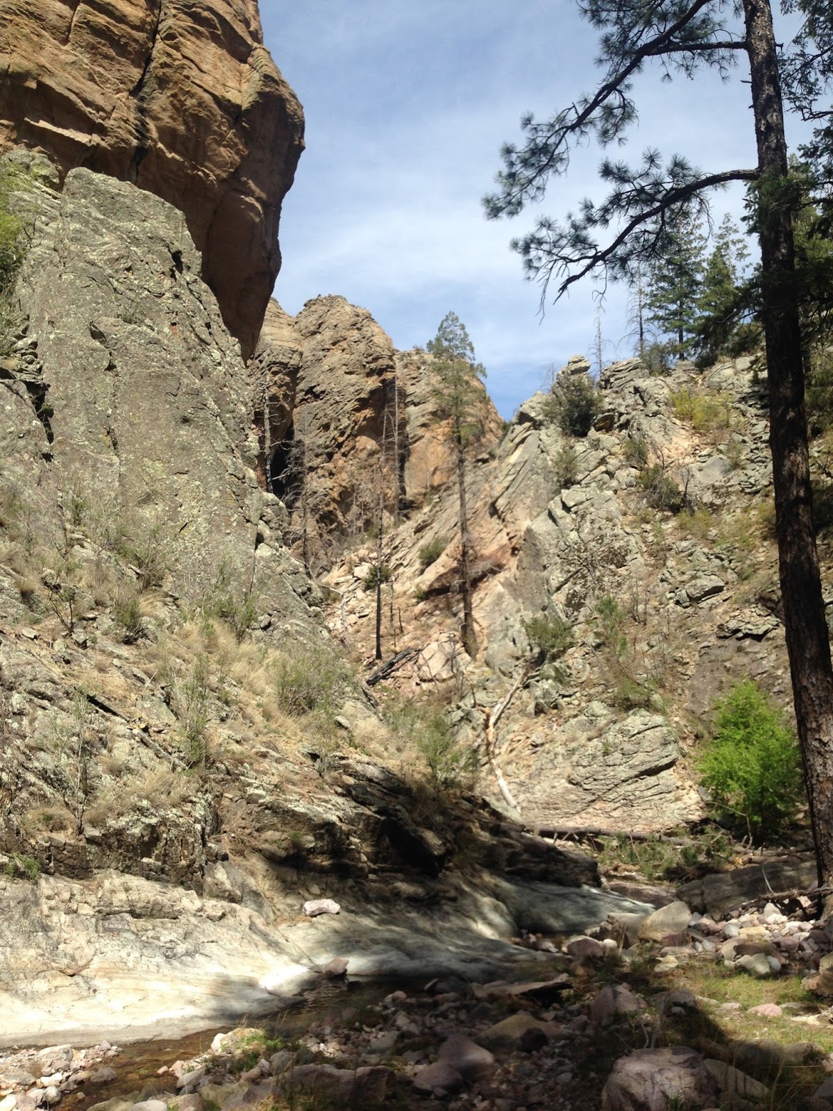 It's probably been close to 10 years since we hiked here last and this was either the third or fourth time we've done this trail. The last time we tried, there was no place to park past the private property and before the first creek crossing which we did not attempt in our two wheel drive truck. There was much unhappiness backing up the narrow road and turning around that day( read about it in this blog's entry for April 21, 2014 " Black Range East Side"). The first part of road was clear this past Sunday( April 17,2017) and there was enough room to park a hundred yards in or so,but I had forgotten completely about the treacherous first crossing and even though I had four wheel drive this time, I ended up doing the backing up trick again. I might've gone for it at the crossing, if my wife hadn't been with me. There is a fairly large camping and parking area on the other side, which would be the main advantage,because shortly afterward there is the second crossing which no one appears to be crossing at all, so hiking time added round trip amounts to something less than 10 minutes.